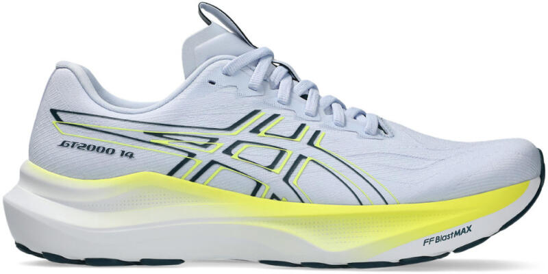 Az Asics GT-2000 14 futócipő úgy lett kialakítva, hogy energikusabb futást és jobb tartást biztosítson. A trambulin-szerű párnázás nagyobb energia-visszanyerést és jobb elrugaszkodást tesz lehetővé. A középtalp FF BLAST MAX párnázási egységgel lett frissítve, amely energikusabb elrugaszkodást és felhőszerű puhaságot nyújt. ?Az AHARPLUS és AHAR LO külsőtalp magas kopásállóságot és megbízható tapadást biztosít.